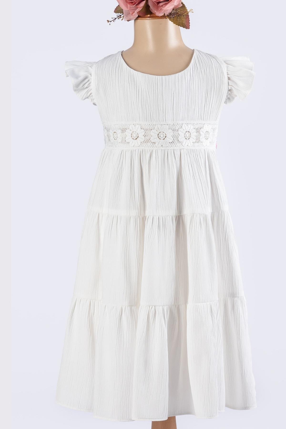 Şıklığı ve rahatlığı bir araya getiren bu kız çocuk elbisesi, bürümcük kumaştan üretilmiştir. Nefes alabilen yapısı sayesinde çocukların cildine dosttur ve gün boyu konfor sağlar. Özel desenli tasarımı ile hem günlük kullanımda hem de özel günlerde rahatça tercih edilebilir.