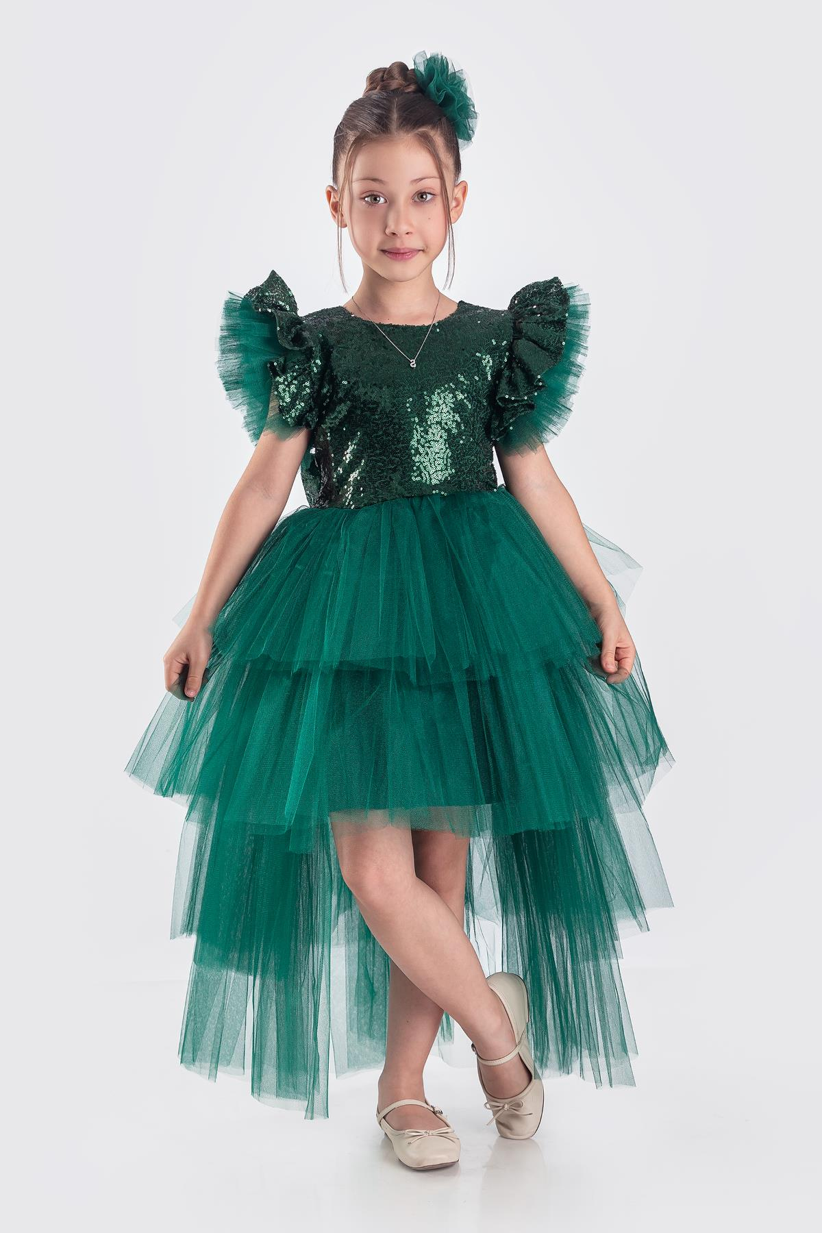 Pul Payet Kuyruklu Kız Çocuk Abiye Elbise - Ördek Başı Yeşili